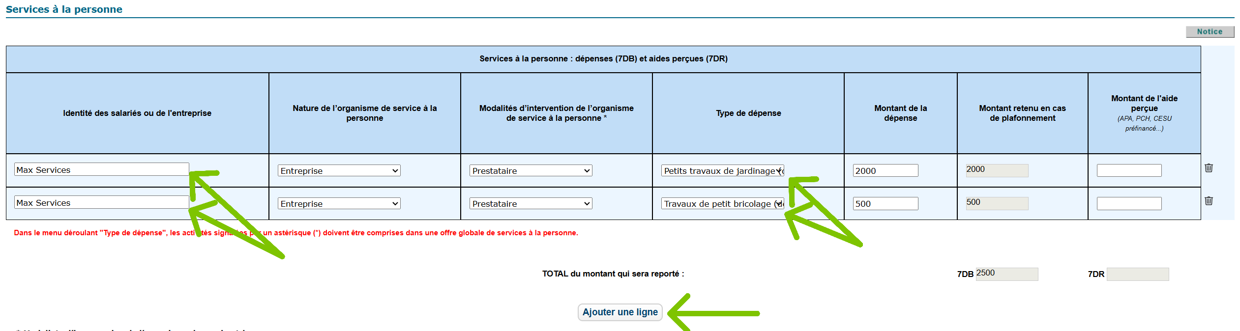 - Séparez les prestations si le prestataire a réalisé à la fois du bricolage et du jardinage.
