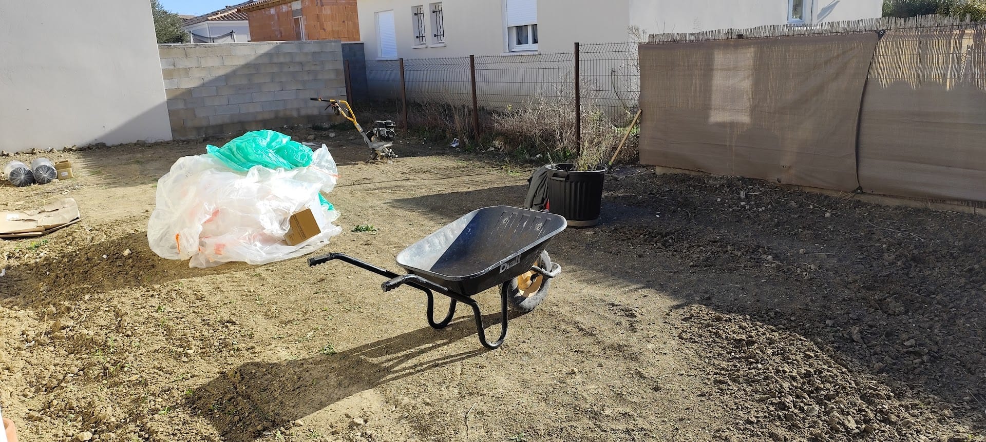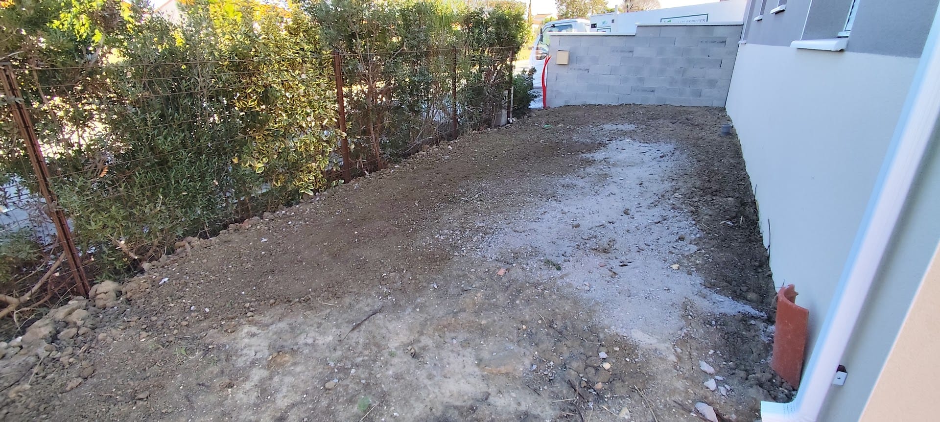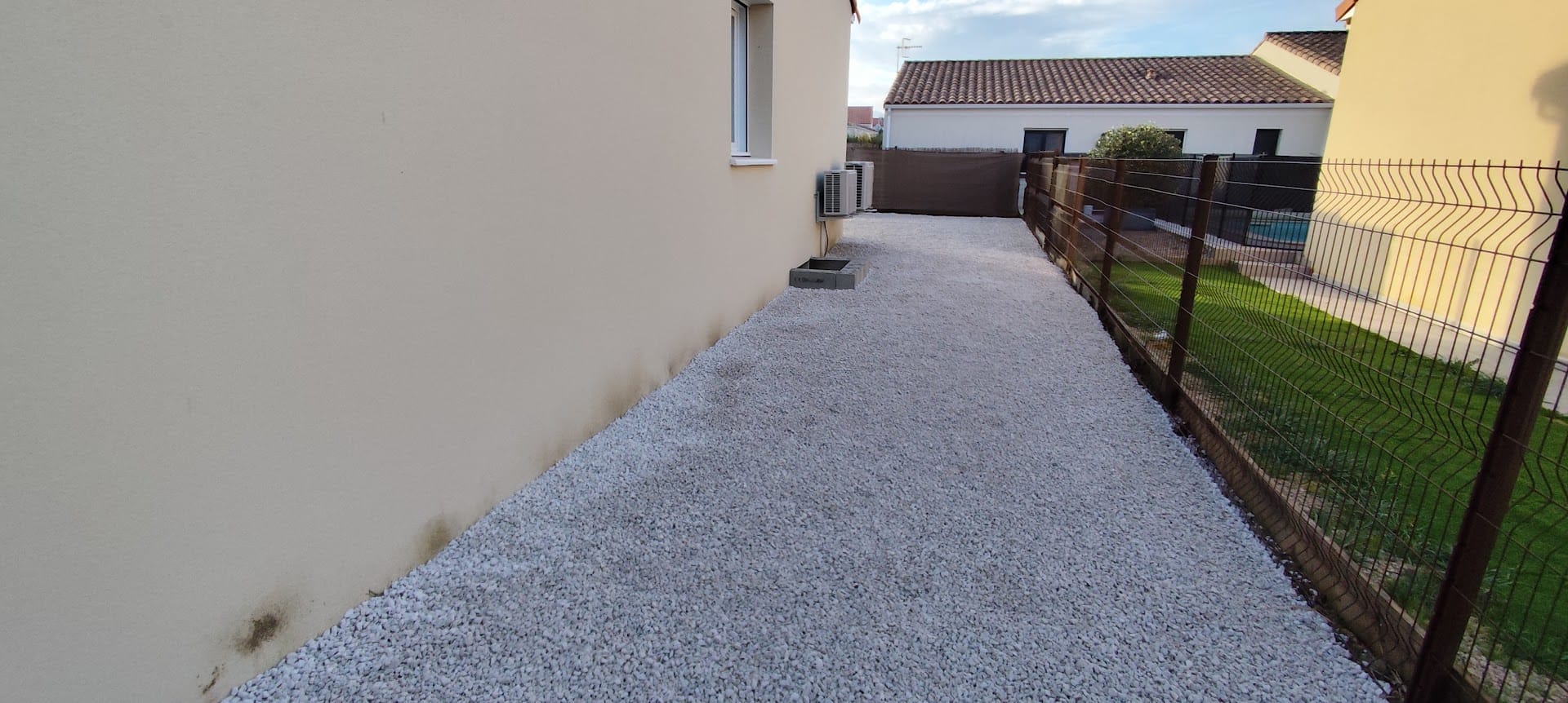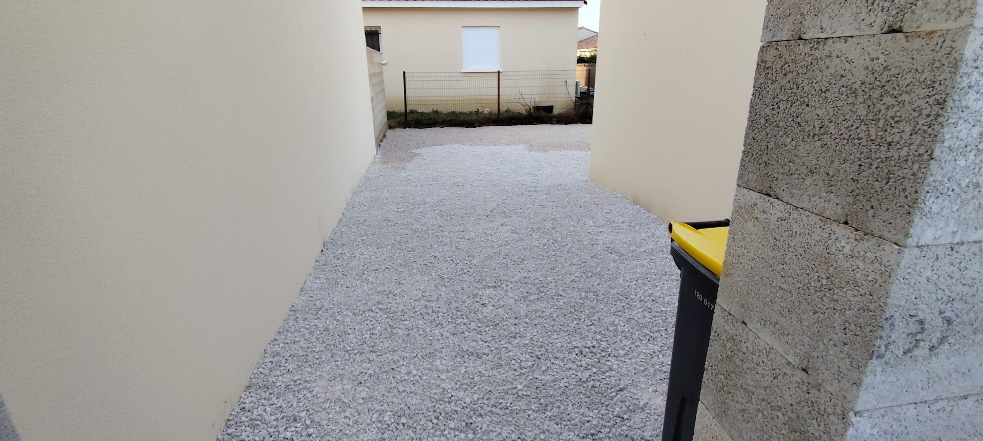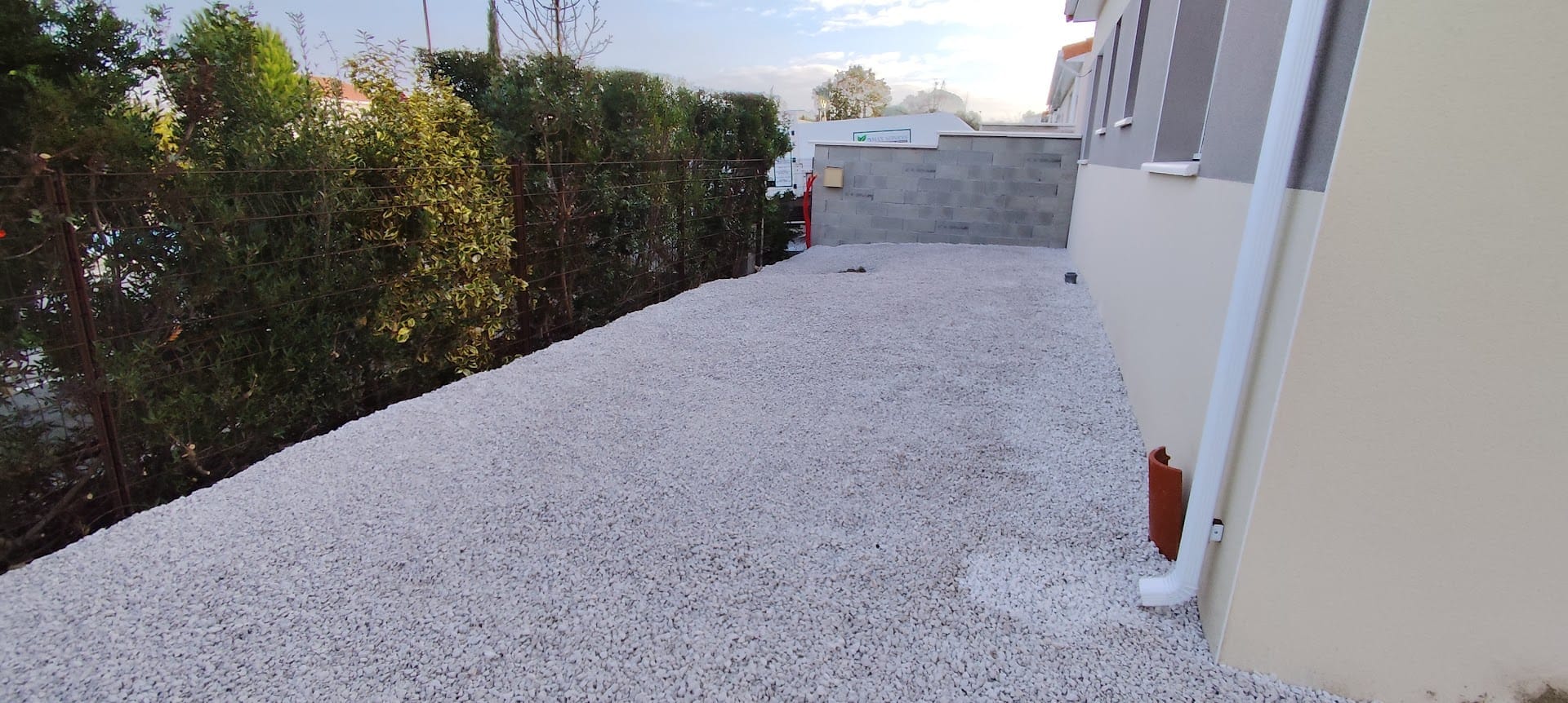 Grosse livraison de gravier blanc pour ce chantier oĂč ma cliente a souhaitĂ©, dans un premier temps, un espace tout en gravier blanc pour pouvoir profiter rapidement de l’extĂ©rieur.